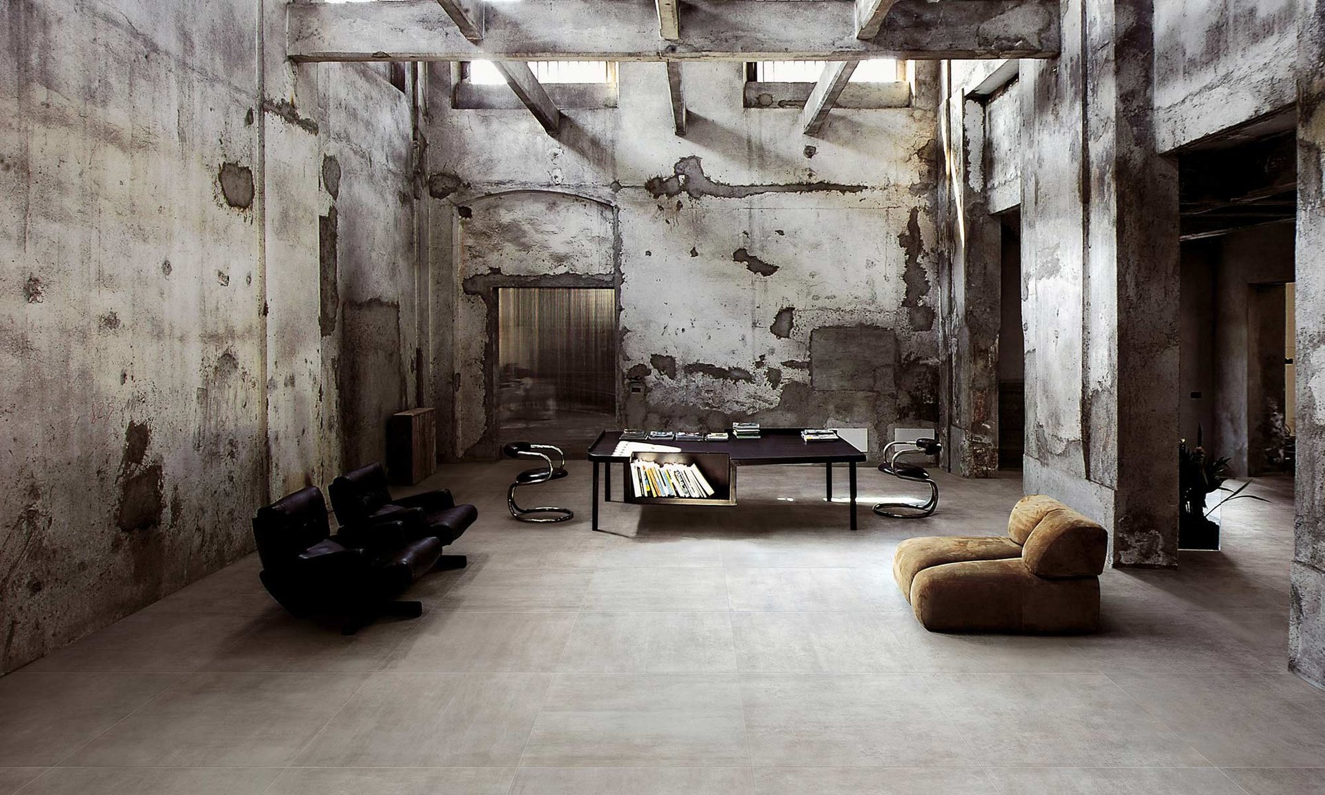 Кроме того‚ бетон отлично сочетается с растениями. Зелень добавляет интерьеру свежести и жизненной энергии. Мы советуем вам использовать крупные растения в горшках‚ чтобы создать эффект тропического оазиса.