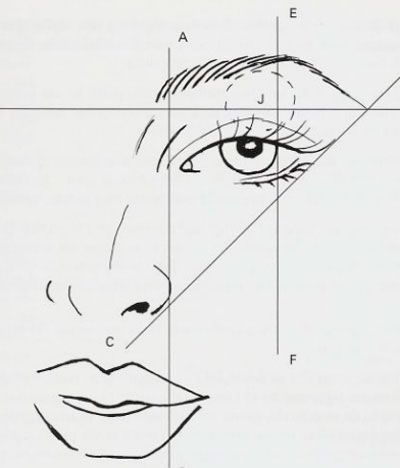 - Определите наивысшую точку брови (излом): Приложите карандаш от крыла носа через зрачок. Точка, где карандаш пересекает бровь, и будет ее наивысшей точкой.